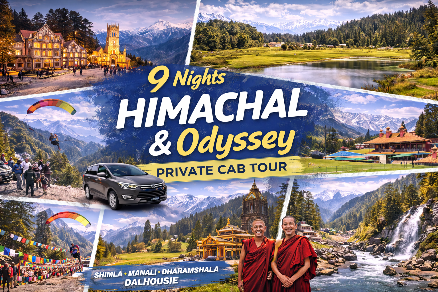 Witness the breathtaking beauty of Himachal Pradesh with this ultimate 9 Nights / 10 Days Himalayan circuit, covering the iconic destinations of Shimla, Manali, Dharamshala, and Dalhousie.